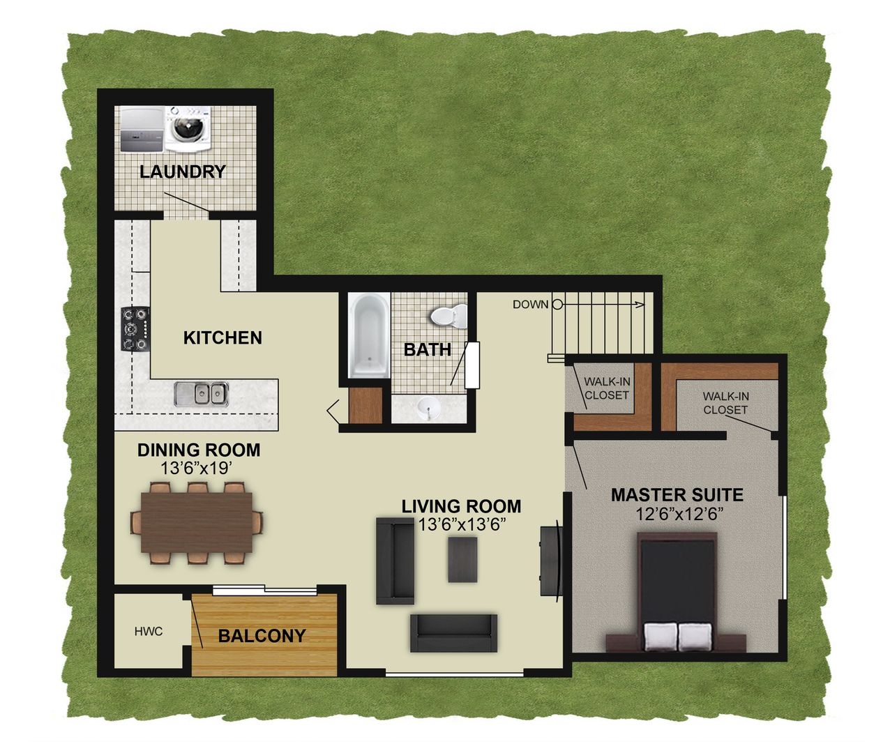 The Arcadia - 1 Bedroom, 1 Bathroom, 2nd Floor unit with Attached Garage